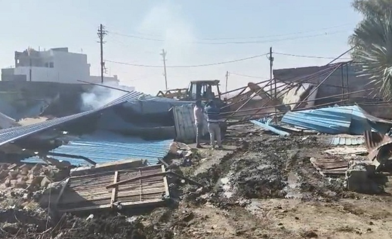 एसडीएम घनश्याम धनगर ने बताया कि मंगलवार को तहसील सांवेर के ग्राम पंचडेहरिया में आग लगने की सूचना प्राप्त होते ही स्थानीय प्रशासन द्वारा त्वरित कार्रवाई की गई। एसडीएम सांवेर, तहसीलदार सांवेर एवं थाना प्रभारी सांवेर तत्काल मौके पर पहुंचे तथा फायर ब्रिगेड के माध्यम से आग पर काबू पाया गया। जांच के दौरान यह तथ्य संज्ञान में आया कि ग्राम पंचडेहरिया स्थित शासकीय रास्ता मद की भूमि, सर्वे नंबर 33 पर लगभग 10 हजार वर्ग फीट क्षेत्रफल में राहुल अग्रवाल पुत्र रमेश चंद्र अग्रवाल निवासी छोटा बांगड़दा इंदौर द्वारा अस्थायी शेड बनाकर पटाखों का अवैध भंडारण किया जा रहा था। उक्त अवैध निर्माण एवं अतिक्रमण को आज बुधवार को राजस्व टीम सांवेर द्वारा तहसीलदार पूनम तोमर के नेतृत्व में पुलिस बल की उपस्थिति में हटाने की कार्रवाई की गई।