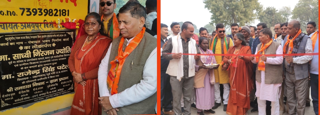 फतेहपुर, 25 जनवरी । उत्तर प्रदेश के फतेहपुर जिले में रविवार को पूर्व केन्द्रीय मंत्री साध्वी निरंजन ज्योति ने पंचायत भवन को लोकार्पण कर ग्रामवासियों को समर्पित किया। विकास खण्ड मलवां क्षेत्र के ग्राम पंचायत अभयपुर में विकास कार्यों को नई गति देते हुए बहुउद्देशीय योजना के तहत नवनिर्मित पंचायत भवन का भव्य लोकार्पण समारोह आयोजित किया गया। पंचायत भवन का निर्माण 28.8 लाख रुपये की लागत से कराया गया है, जिससे ग्राम पंचायत स्तर पर प्रशासनिक कार्यों को मजबूती मिलेगी।