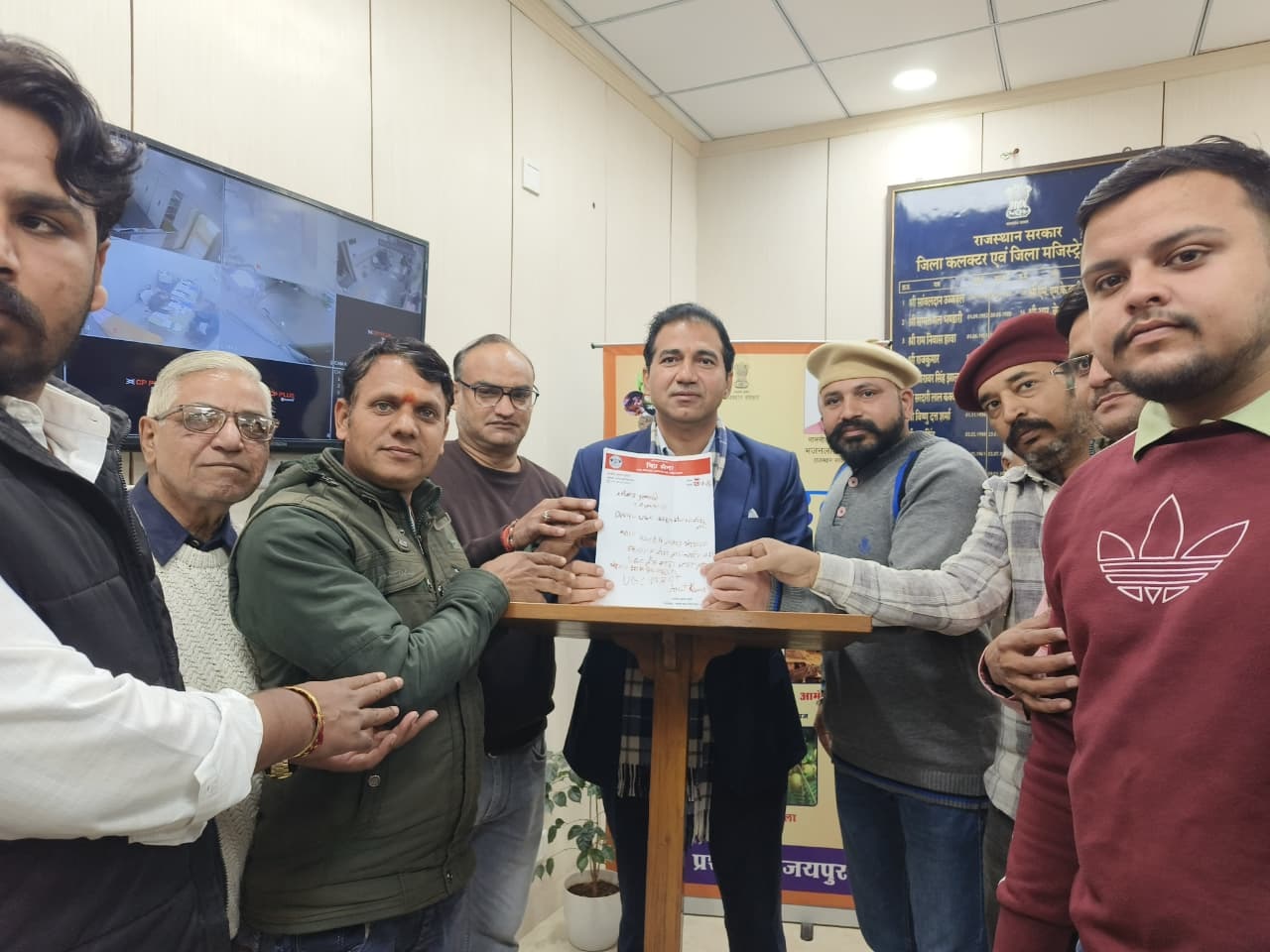 विप्र सेना के जयपुर जिला अध्यक्ष अजीत कुमार शर्मा ने अपने खून से लिखा ज्ञापन कलेक्टर को सौंपा।