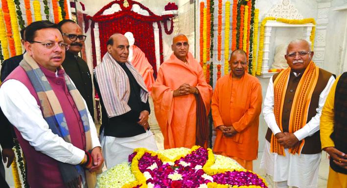 समारोह के समापन अवसर पर केन्द्रीय रक्षा मंत्री के साथ ही आवास और शहरी मामलों के केंद्रीय मंत्री मनोहर लाल खट्टर, उत्तराखंड के मुख्यमंत्री पुष्कर सिंह धामी, उत्तर प्रदेश के मुख्यमंत्री योगी आदित्यनाथ, उत्तर प्रदेश के उप मुख्यमंत्री बृजेश पाठक तथा जूना अखाड़े के आचार्य महामंडलेश्वर अवधेशानंद गिरि महाराज सहित अनेक संत-महात्मा एवं गणमान्य अतिथियों ने समाधि स्थल पर पहुंचकर श्रद्धासुमन अर्पित किए।